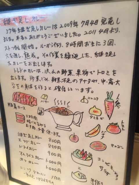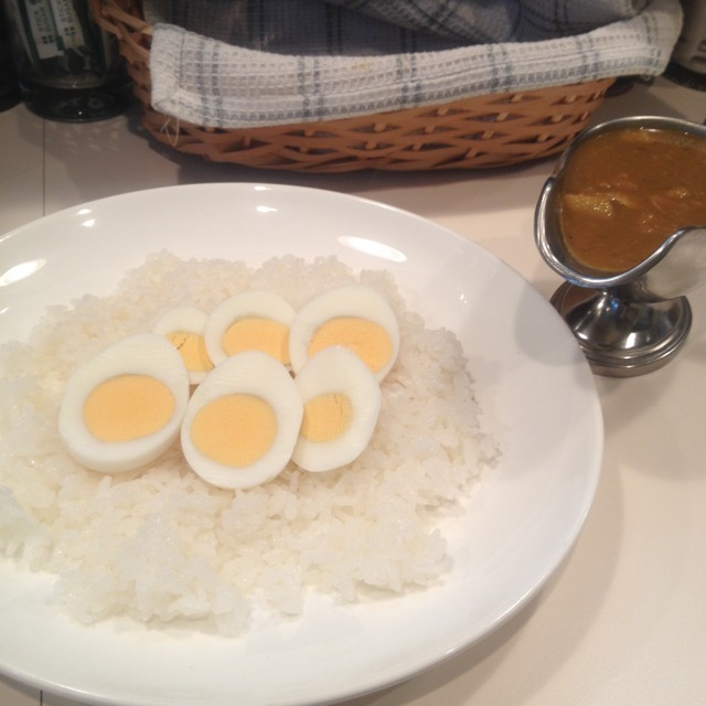 継ぎ足しカレーというのが創業時(1972年)からの伝統的なメニューらしい。 たまごをつけてエッグカレーを注文する。