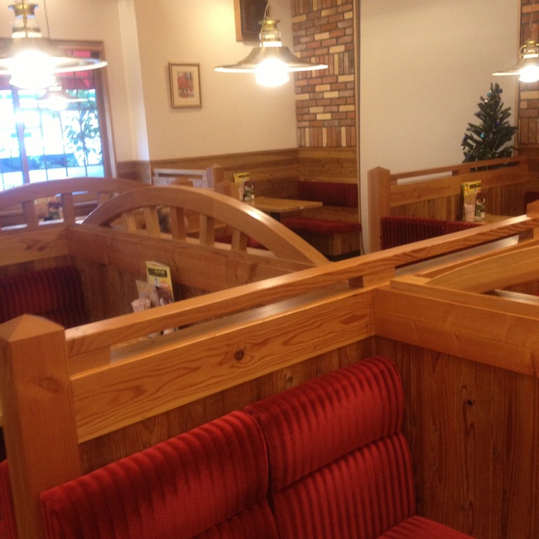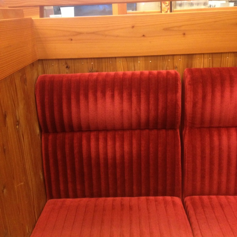 真紅のふかふかなイスがレトロな雰囲気を醸している。 席は、ブースになっているので、広々としてよい。