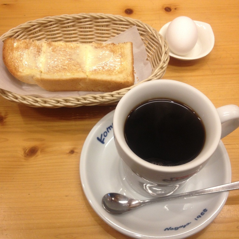 ものの数分で、アツアツトーストとコーヒー、ゆでたまごが登場。