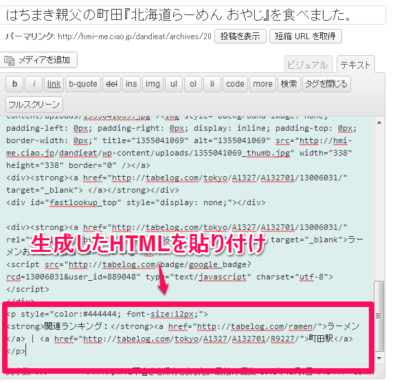 生成したHTMLをWordpressに貼り付ける