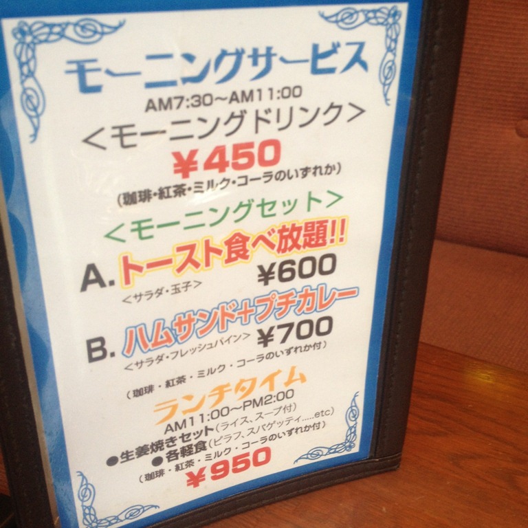 モーニングサービスは以下が選択できる。